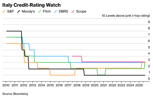 (chart: “Italy Credit-Rating Watch,” Source: Bloomberg)
