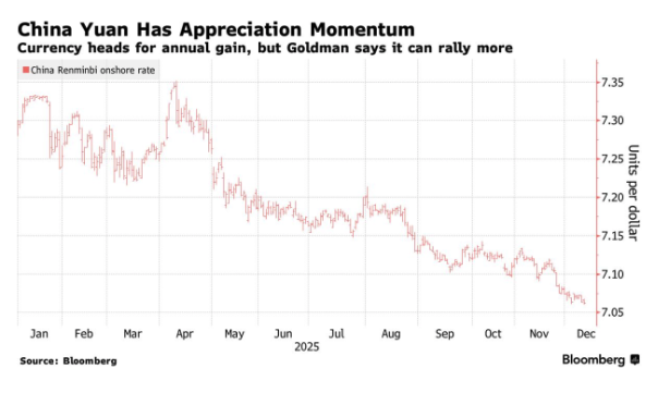 Goldman Sachs argues that the yuan is significantly undervalued and is likely to appreciate more strongly over the coming years than the forward market currently implies. According to the bank, the currency is around 25 percent too cheap based on fundamental models, despite the risks stemming from weak domestic growth and deflationary pressure.