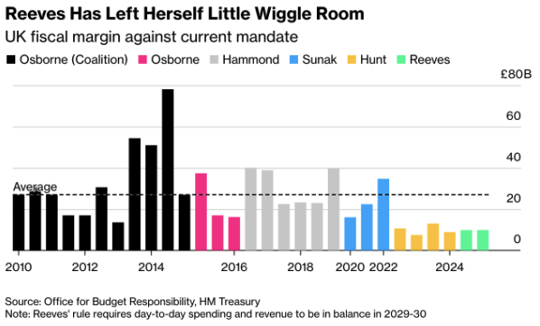 (Chart: Reeves Has Left Herself Little Wiggle Room – Source: Office for Budget Responsibility, HM Treasury)