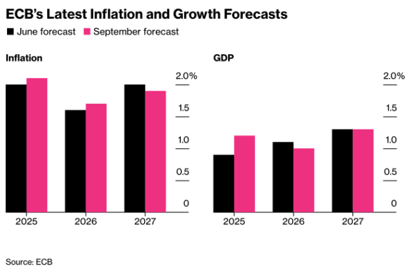 (Charts: “Euro-Area Inflation Ticks Up” – Eurostat; “ECB’s Latest Inflation and Growth Forecasts” – ECB)