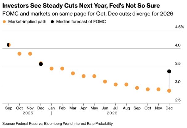 (Chart: Investors See Steady Cuts Next Year, Fed’s Not So Sure)