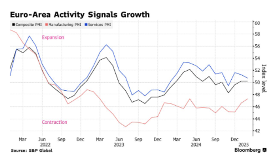Last week, the numbers from the Union were once again underwhelming. Purchasing Managers’ Indices signaled a mild recession in the manufacturing sector, while the minimal growth in the services sector suggested only barely measurable expansion.