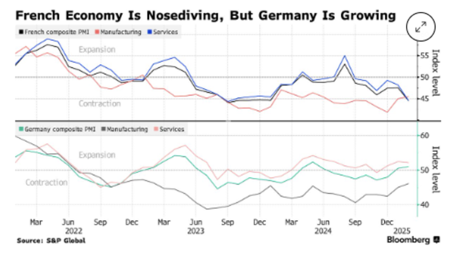 France’s figures were highly negative, while Germany’s numbers suggested slight growth.