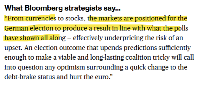 This brings us directly to this weekend’s elections, where economic growth will depend on the new government. On Sunday, the German people went to the polls, delivering a significant victory for the AfD. However, this outcome was largely in line with expectations, and no major surprises emerged.