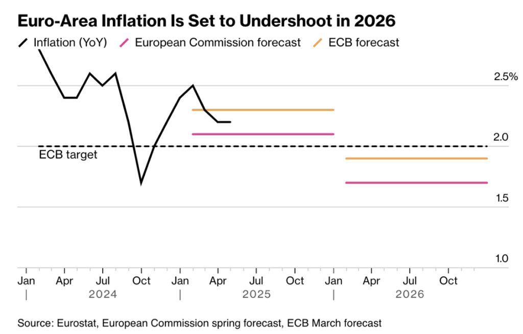 Lane’s comments come at a pivotal moment for the ECB. Inflation in the eurozone briefly reached 2.2% in April, but economists expect it to fall back below 2% in May. The European Commission this week forecast an average inflation rate of just 1.7% for 2025, and the ECB is also anticipating inflation to remain below target in 2026.