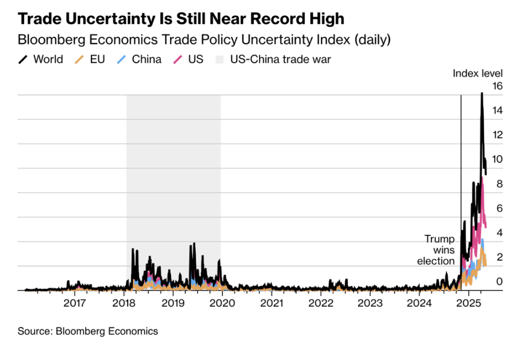 The biggest surprise of the week came out of Geneva: the U.S. and China agreed to mutually reduce tariffs. U.S. tariffs on Chinese imports will drop from 145% to 30%, while Chinese tariffs on U.S. goods will fall from 125% to 10%. A newly formed negotiating team will work toward a more comprehensive agreement over the next three months.